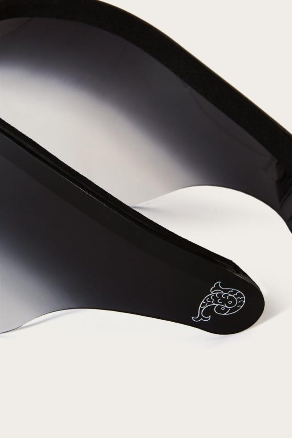 Camille Miceli spotlights Pucci’s futuristic vision in this protective visor. The oversized design fades from black to transparent and is complete with the moniker and intertwined fish motif at the temples.