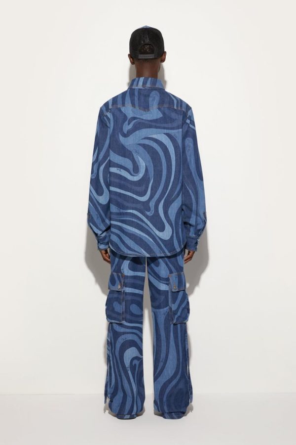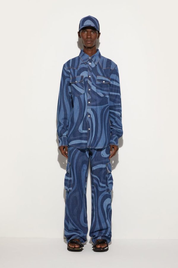 A Western sensibility defines this shirt, but trademark Marmo-print swirls keep things distinctly Pucci. It’s cut from dark-wash denim with visible topstitching and lustrous press-stud fastenings.