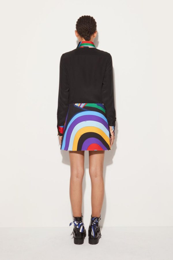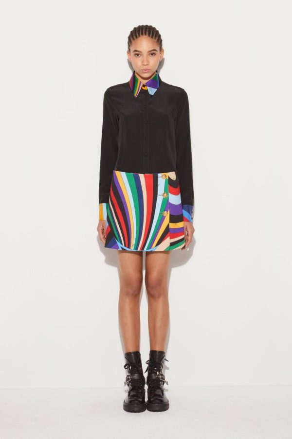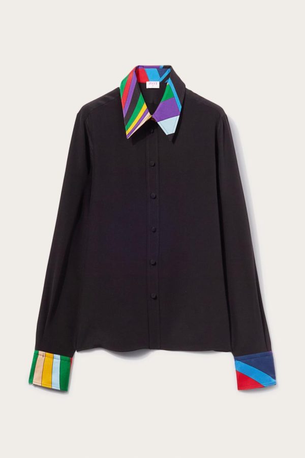 Fragments of the dynamic Iride print – inspired by the eye’s iris – invigorate this black shirt in contrasting bursts of colour. It’s cut from silk crepe de chine to a relaxed silhouette with a point collar.