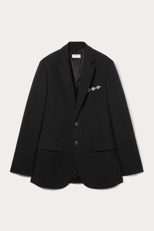 Pucci’s take on tailoring, this blazer is punctuated with the vintage-inspired Vivara print at the welt pocket. Classic elements remain: it’s cut to a single-breasted silhouette with notch lapels and flap side pockets.