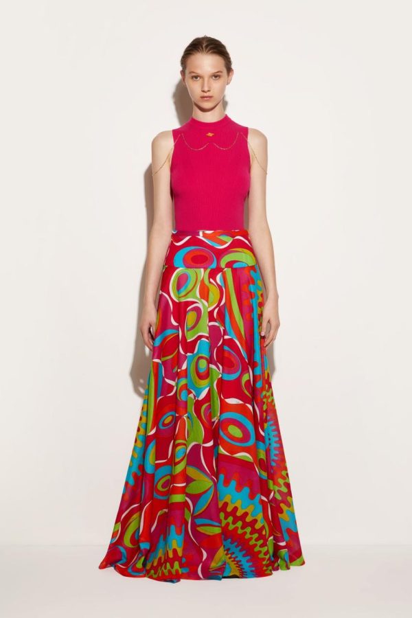 Pucci offers this sleeveless sweater with an unexpected twist; a slim chain drapes elegantly over the arms and across the front. It’s complete with a polished logo plaque at the neck.