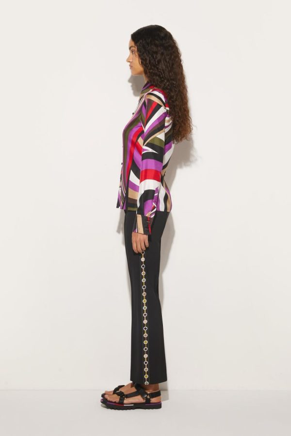 This silk-twill shirt is Pucci’s spirited take on a classic wardrobe staple: it’s transformed by the Iride print’s vibrant colours and dynamic shapes.